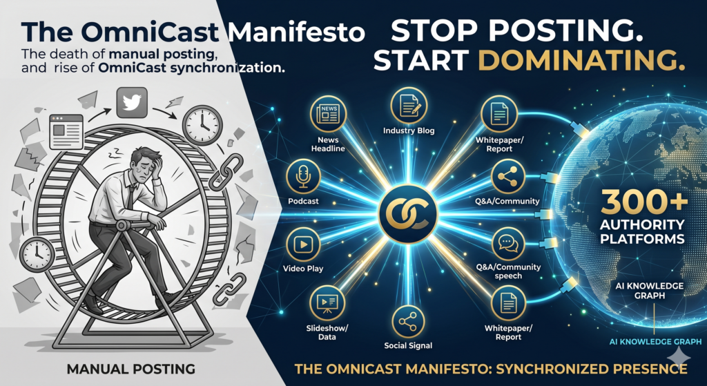 When you post manually, you are shouting into a void. When you OmniCast, you are building an ecosystem.